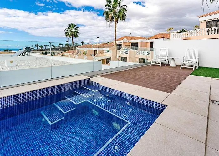 Villa Riviera De 4 Dormitorios Con Piscina розташовані на відстані близько 10 хвилин їзди машиною від Плая-де-лас-Америкас пропонують гостям відвідати веранду для засмаги, місце для пікніка і поле для гольфа. Вілла в Адехові розташована за 25 хвилин пішої прогулянки від аквапарку "Сіам Парк" і пропонує Wi-Fi та парковку.
